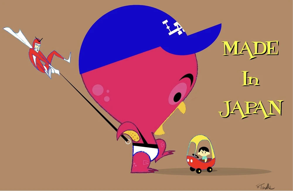 Made in Japan contaria a história de um super-herói criando um bebê monstro. Tindle criou sua arte conceitual para apresentar o projeto ao Cartoon Network. Porém, a produção do canal pago não aprovou.