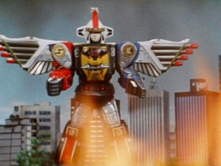 Como diria Milton Neves: essa é a parte que eu mais gosto. A terceira temporada de Power Rangers aproveitou praticamente boa parte da segunda metade de Kakuranger, onde os Ninjazords e o Ninja Megazord aparecem. Melhor dizendo, na série japonesa, os mechas animais se chamam Choninju (Feras Super Ninja). Através do comando Goshin Gattai (União dos Cinco Deuses), eles formam o robô gigante Kakure Daishogun.